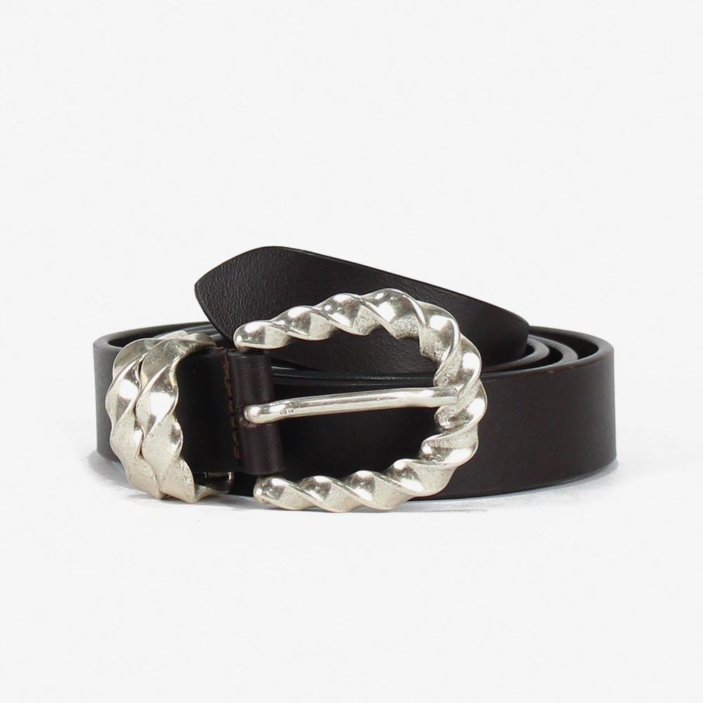 La fibbia tonda e il doppio passante attorcigliato in argento antico conferiscono un tocco di raffinatezza e creano un look unico.