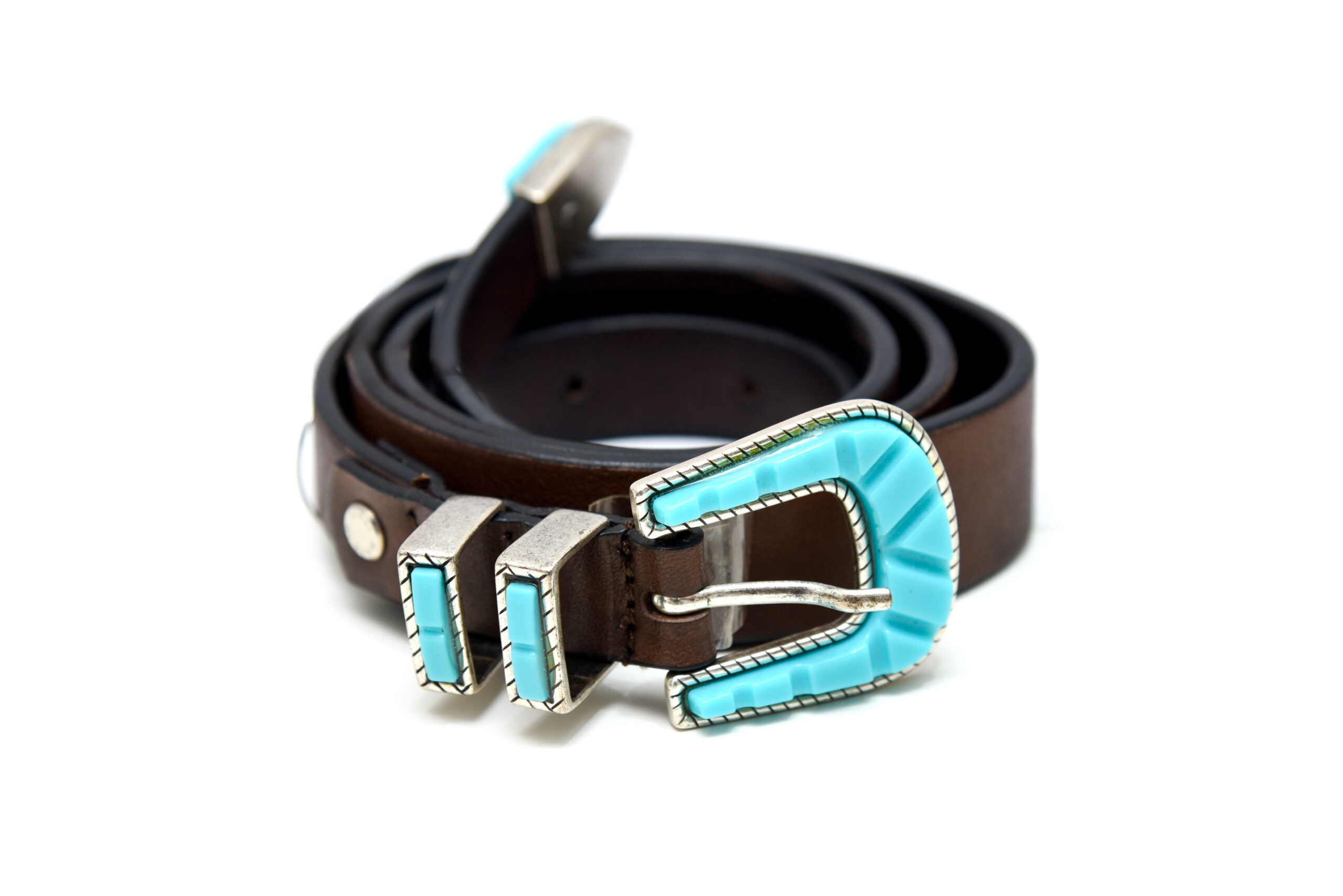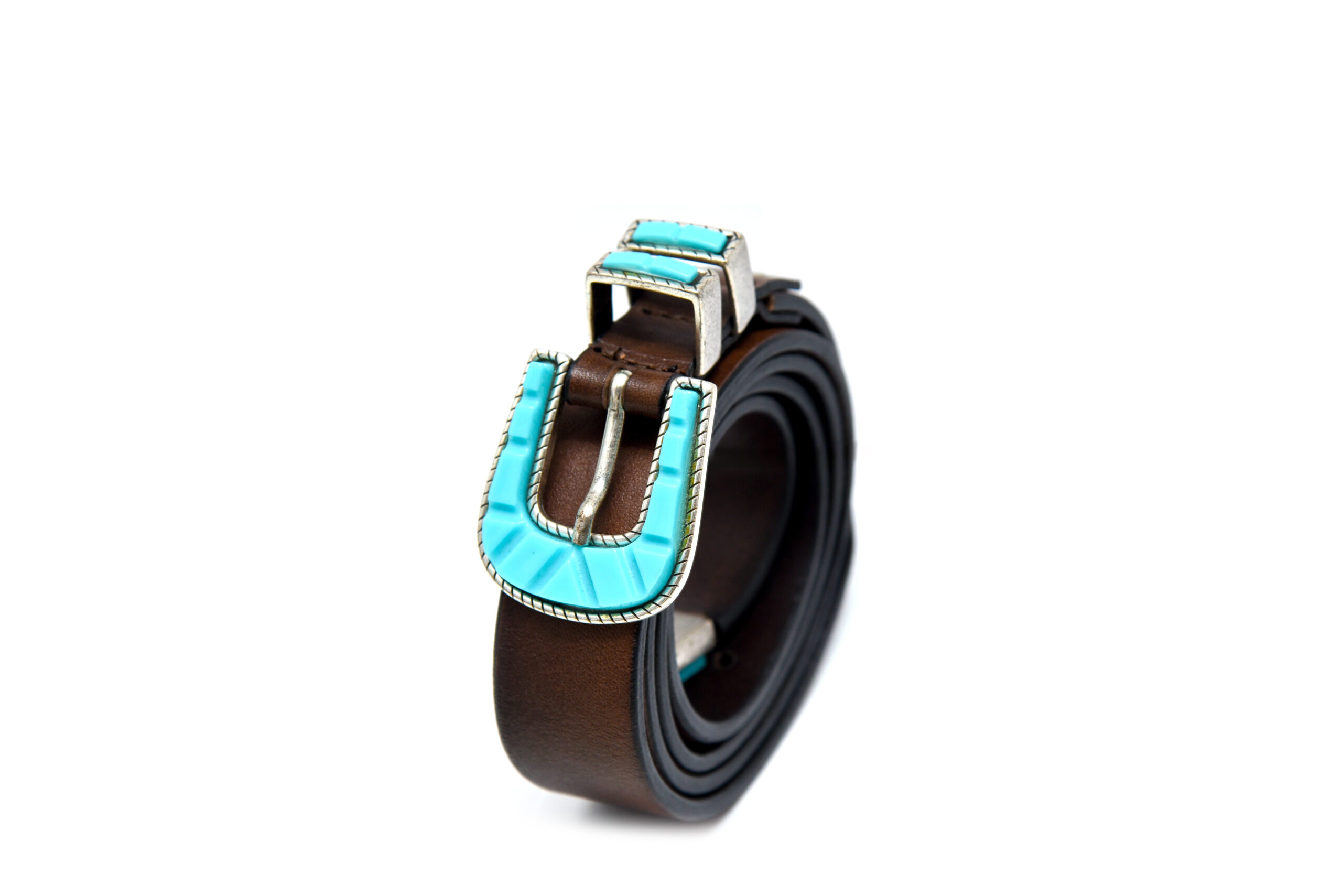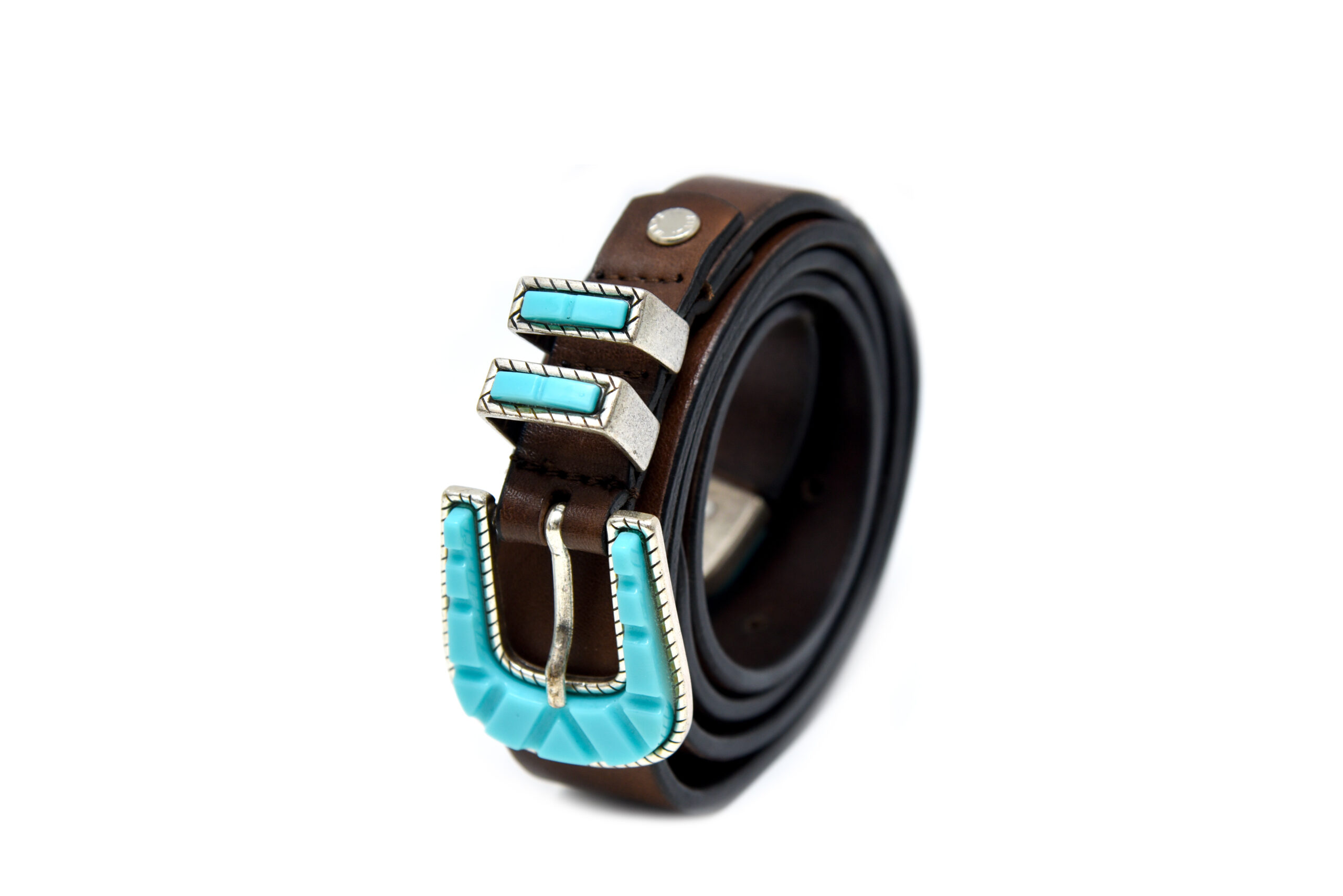 Cintura cuoio Texas con pietre turchesi , un’accessorio da uomo di alta qualità che unisce stile e comfort.